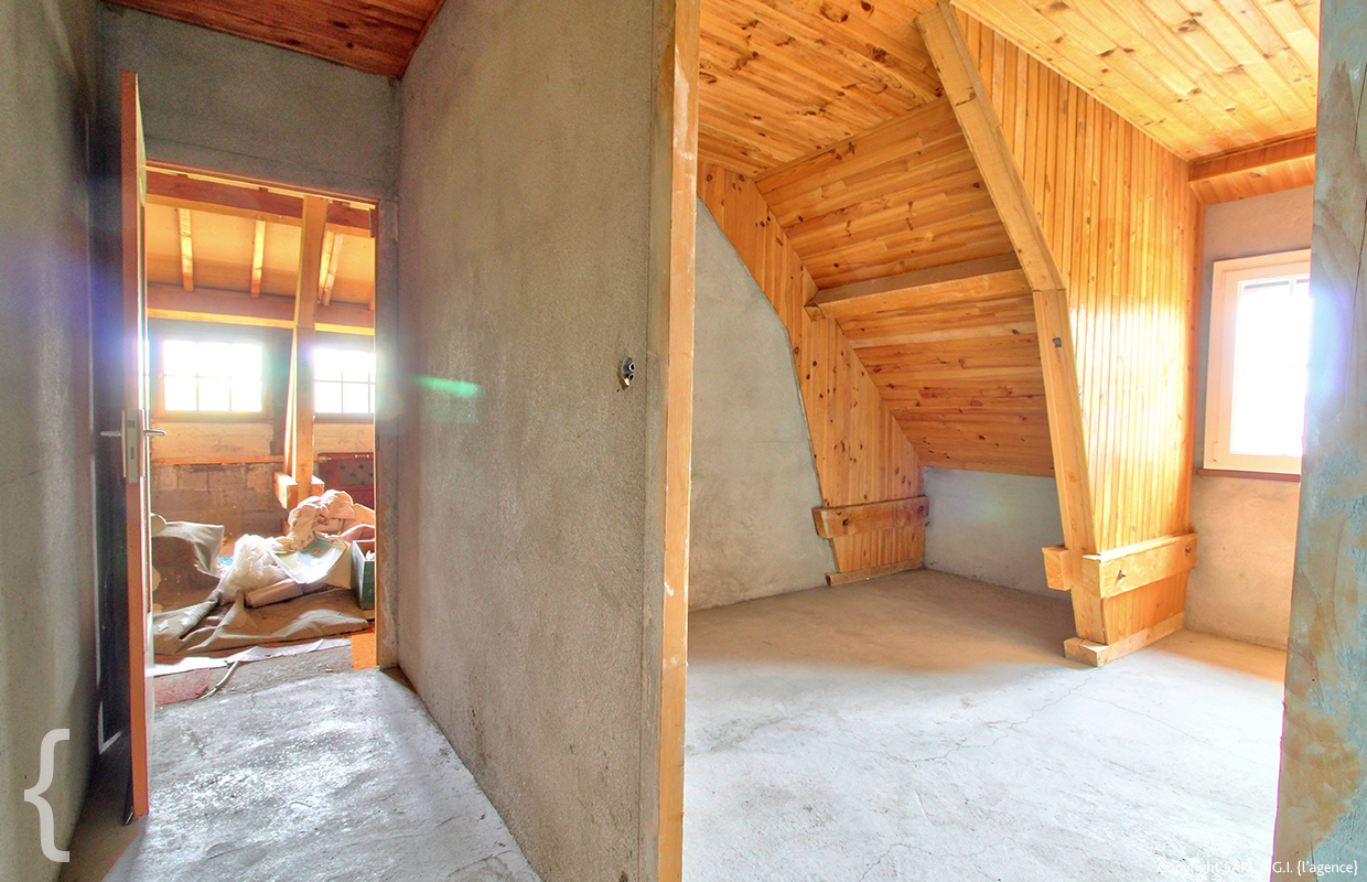 Les combles (117 m² au sol dont 70 m² au-delà de 1,80 m) disposent déjà d’un WC indépendant et d’un espace prévu pour une salle d’eau, permettant d’imaginer plusieurs chambres ou espaces de vie et d’atteindre ainsi, près de 187 m² habitables.