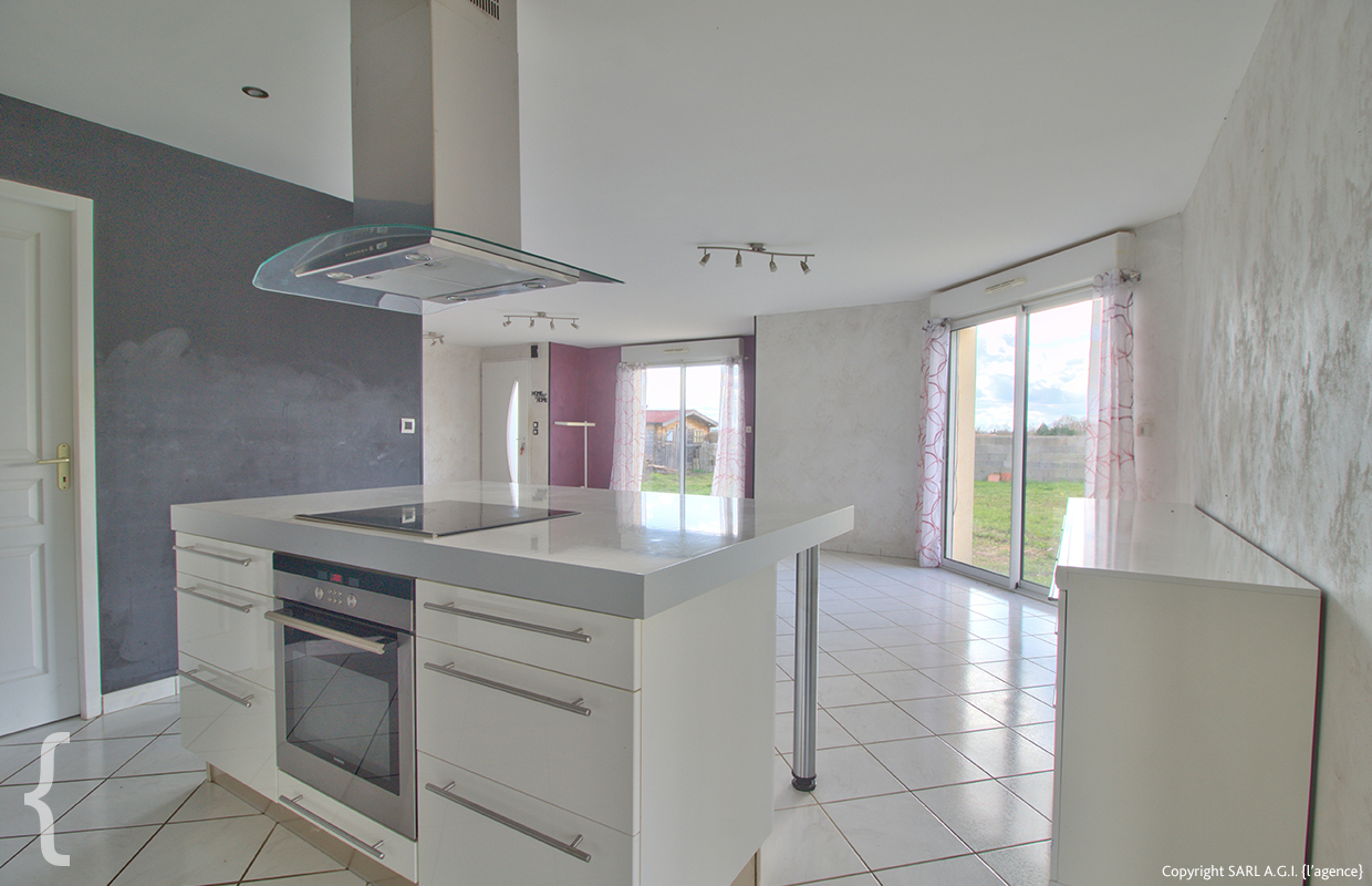 Dès l’entrée, vous êtes immédiatement séduits par un superbe espace de vie d’environ 48 m², largement ouvert sur l’extérieur grâce à de belles baies vitrées et portes-fenêtres qui inondent la pièce de lumière. Cet espace convivial permet également l’installation d’un poêle à bois, la réservation pour le conduit étant déjà prévue. La cuisine ouverte et équipée, organisée autour d’un îlot central, crée un lieu chaleureux et fonctionnel pour les moments de partage. Dans son prolongement, une buanderie attenante apporte un confort supplémentaire et peut aisément faire office d’arrière-cuisine.